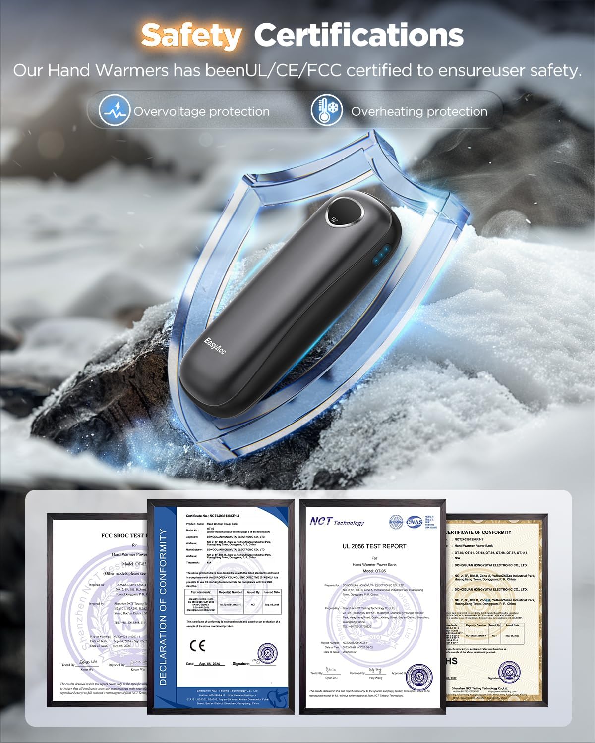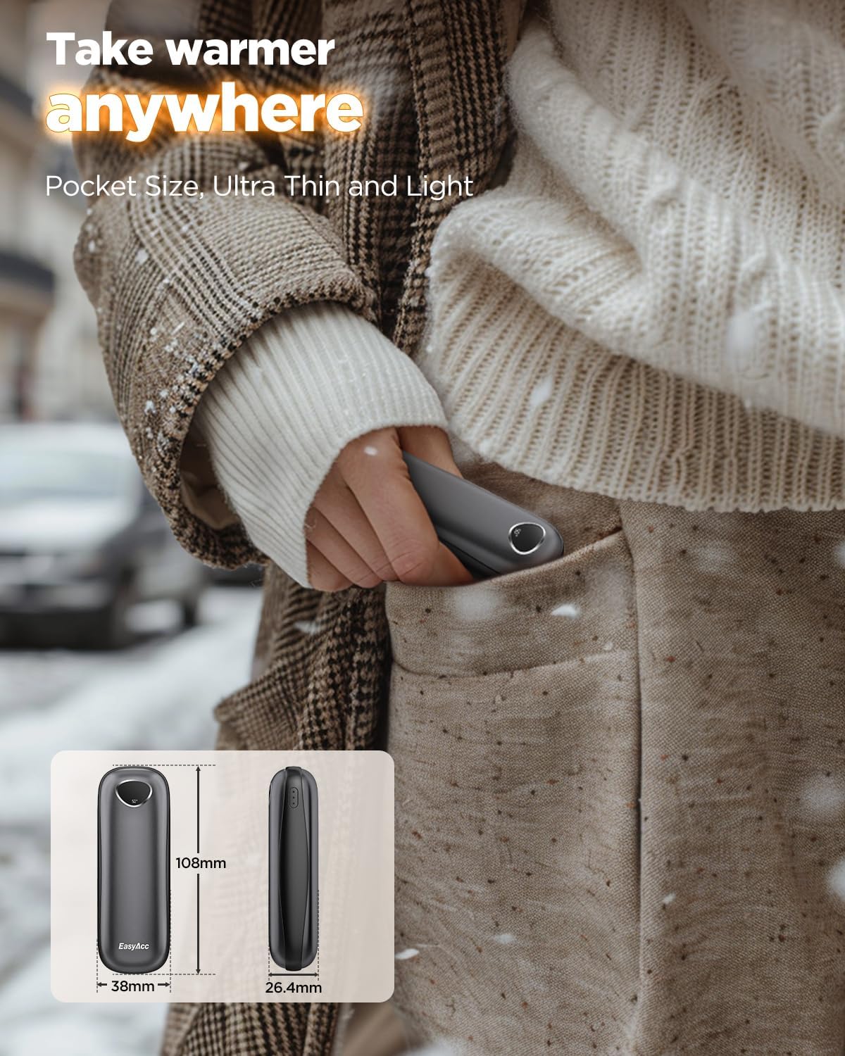 - 【A Heartfelt Gift for Cold Hands and Raynaud's Patients】Warm their hearts and hands with EasyAcc 2 pack rechargeable hand warmer, the perfect gift for those with Raynaud's disease or perpetually cold hands. Lightweight and rechargeable, it's ideal for home, work, or on-the-go. Give the gift of warmth and show your loved ones they’re truly cared for—because everyone deserves a little extra comfort this winter!