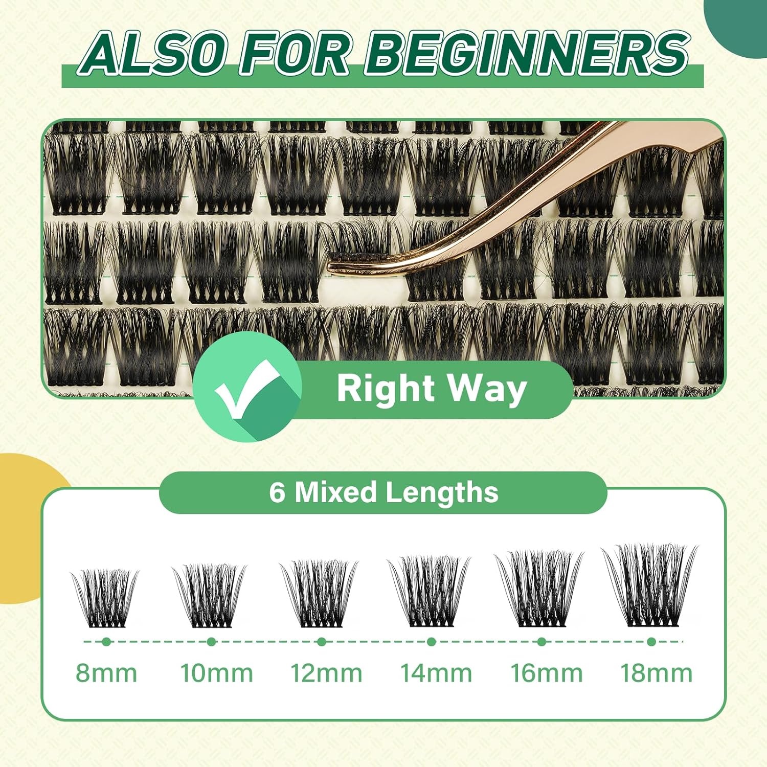 - 【Beginner-friendly Cluster Lash Kit 】The KEYYOU all-inclusive kit provides everything you need for effortlessly stunning lashes. From 144 thin band Cluster Lashes(8*1,10*2,12*3,14*3,16*2,18*1) to the Lash Bond and Lock, Cluster Lash Remover, Applicators, lash brush, we've got you covered from start to finish.
