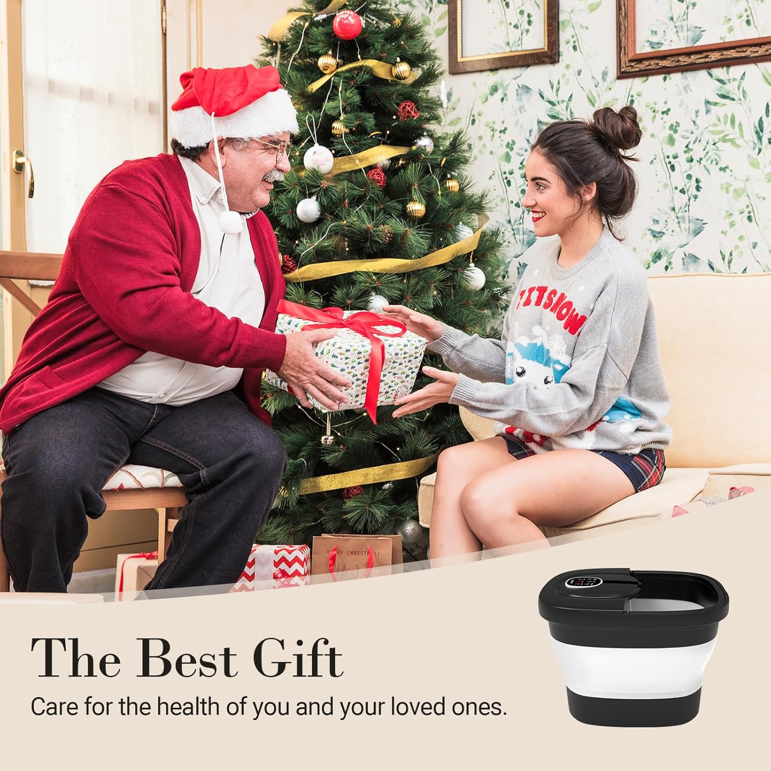 Foot Spa Bath Massager, 2025 Upgraded Foot Bath with Circulation Heat, Motorized Shiatsu Massage Balls, Pedicure Soaking Tub with Waves, Remote, Handle, Feet Stress Relief, Gifts