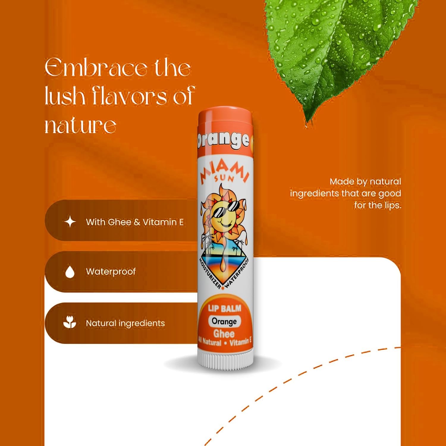 Miami Sun Natural Ghee Lip Balm, Hydrating Lip Treatment with Shea Butter & Beeswax, Organic & Non-Toxic, Best for Dry, Chapped Lips - Moisturizing, Healing, Chemical-Free Lip Care (Gift of 2, Orange)