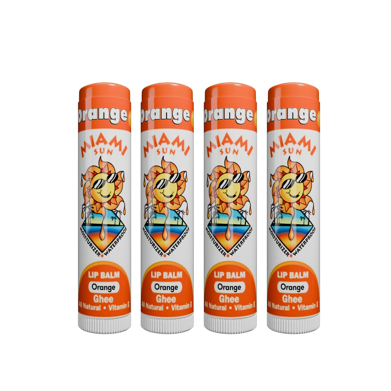 Miami Sun Natural Ghee Lip Balm, Hydrating Lip Treatment with Shea Butter & Beeswax, Organic & Non-Toxic, Best for Dry, Chapped Lips - Moisturizing, Healing, Chemical-Free Lip Repair (4 Count, Orange)
