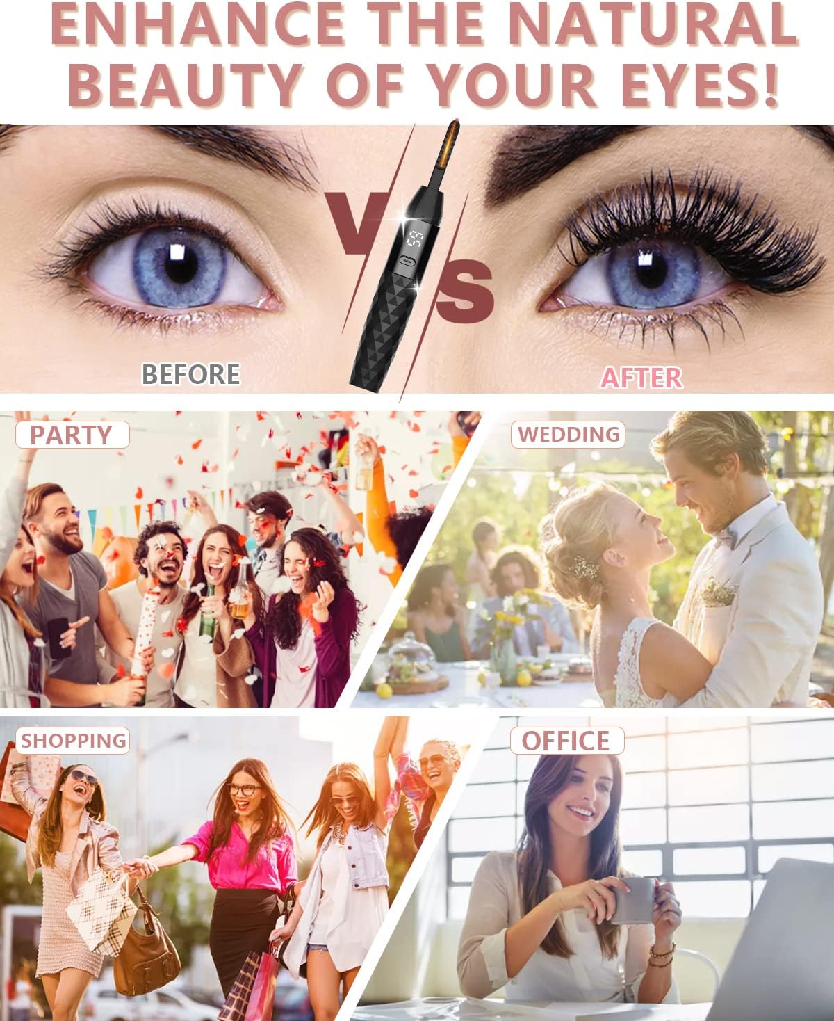 - ELECTRIC EYELASH CURLERS-SWEET GIFT: The slim, compact electric eyelash curler fits easily in a handbag for on-the-go use. It's lightweight and space-saving. Beautifully packaged, it makes a great gift for occasions like Mother's Day and Christmas