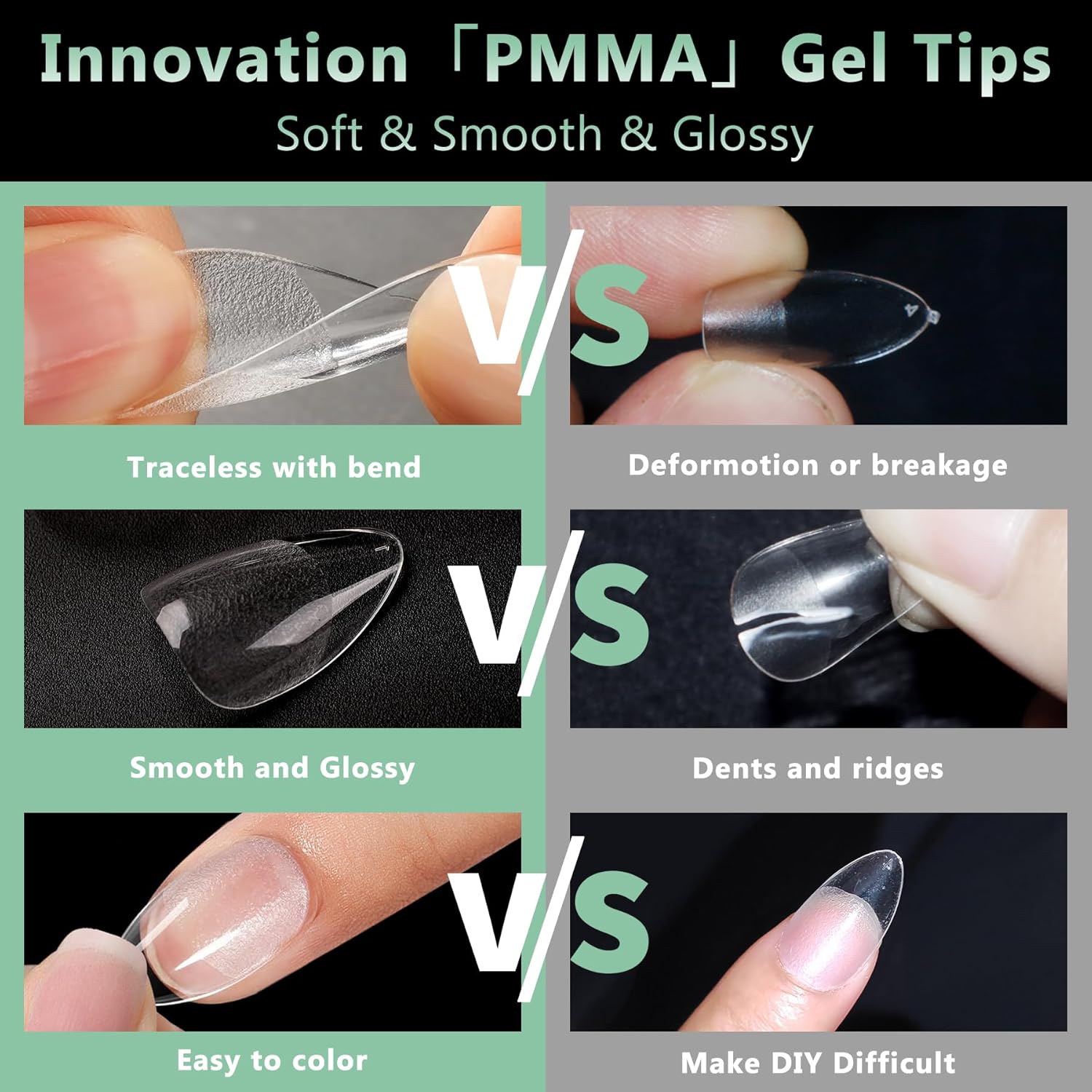 - No Trace Soft Gel Nail Tips: Crafted from gelly soft gel material, these fake nails leave no trace even when bent. Their bright clarity allows for easy pressing, trimming, and painting, helping you create your ideal nail shape effortlessly. Perfect for a true DIY manicure.