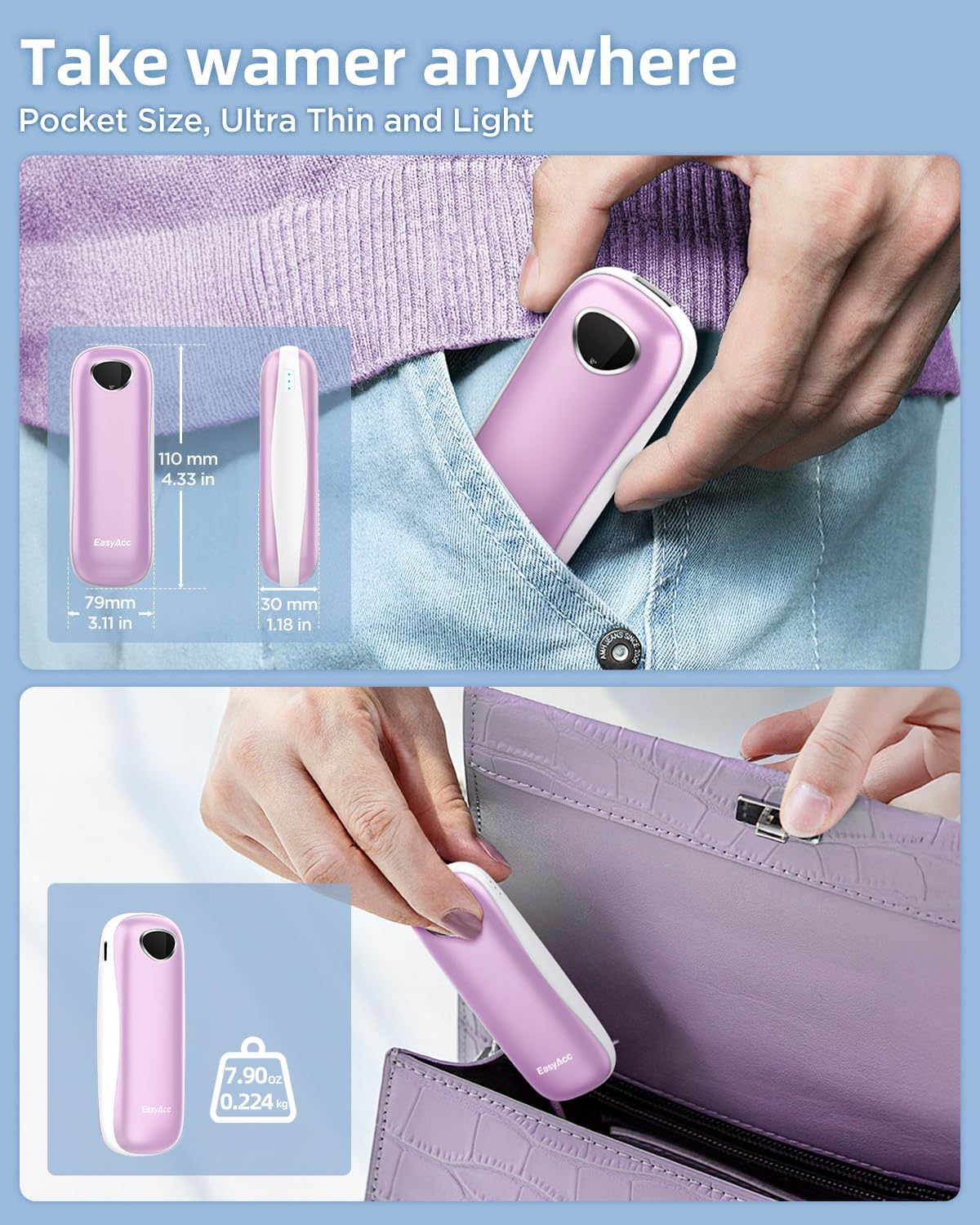 - 【A Heartfelt Gift for Cold Hands and Raynaud's Patients】Warm their hearts and hands with EasyAcc 2 pack rechargeable hand warmer, the perfect gift for those with Raynaud's disease or perpetually cold hands. Lightweight and rechargeable, it's ideal for home, work, or on-the-go. Give the gift of warmth and show your loved ones they’re truly cared for—because everyone deserves a little extra comfort this winter!