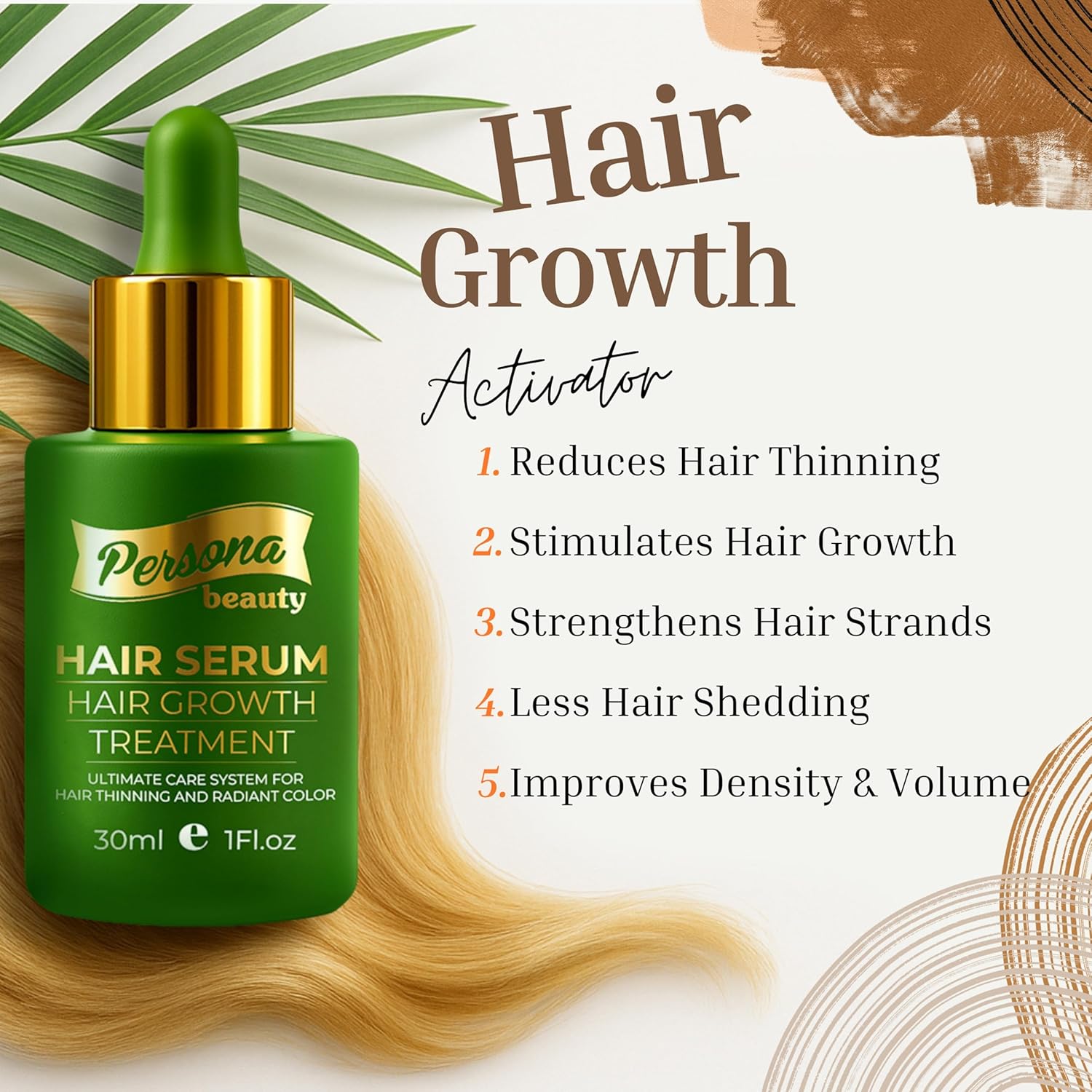 - Advanced Hair Growth Formula for Thicker, Fuller, Stronger Hair – Powered by Biotin, Castor Oil & Plant Extracts Revitalize thinning, damaged hair with Persona Beauty’s high-performance hair growth serum, expertly formulated with biotin, castor oil, and nutrient-rich botanical extracts. This intensive treatment penetrates the scalp to nourish follicles, reduce breakage, and improve density over time. Ideal for early-stage hair thinning, shedding, and overall scalp vitality for men and women of all hair types.