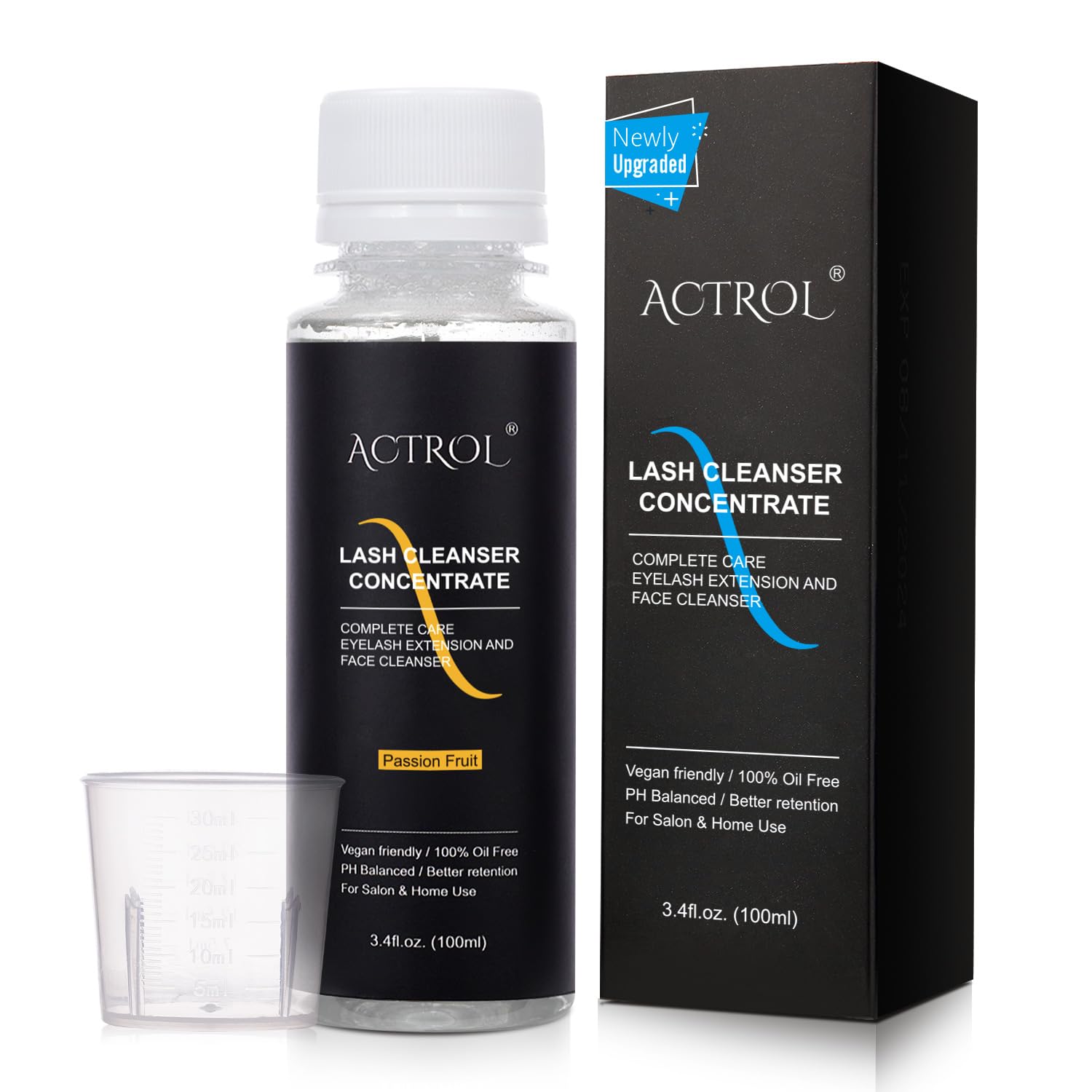 Eyelash Cleanser Concentrate 100ml Passion Fruit Professional Lash Shampoo Foaming Cleanser Lash Wash Concentrate for Extensions Lashes with Salon Home Care-Makes 40 Bottles Passion Fruit