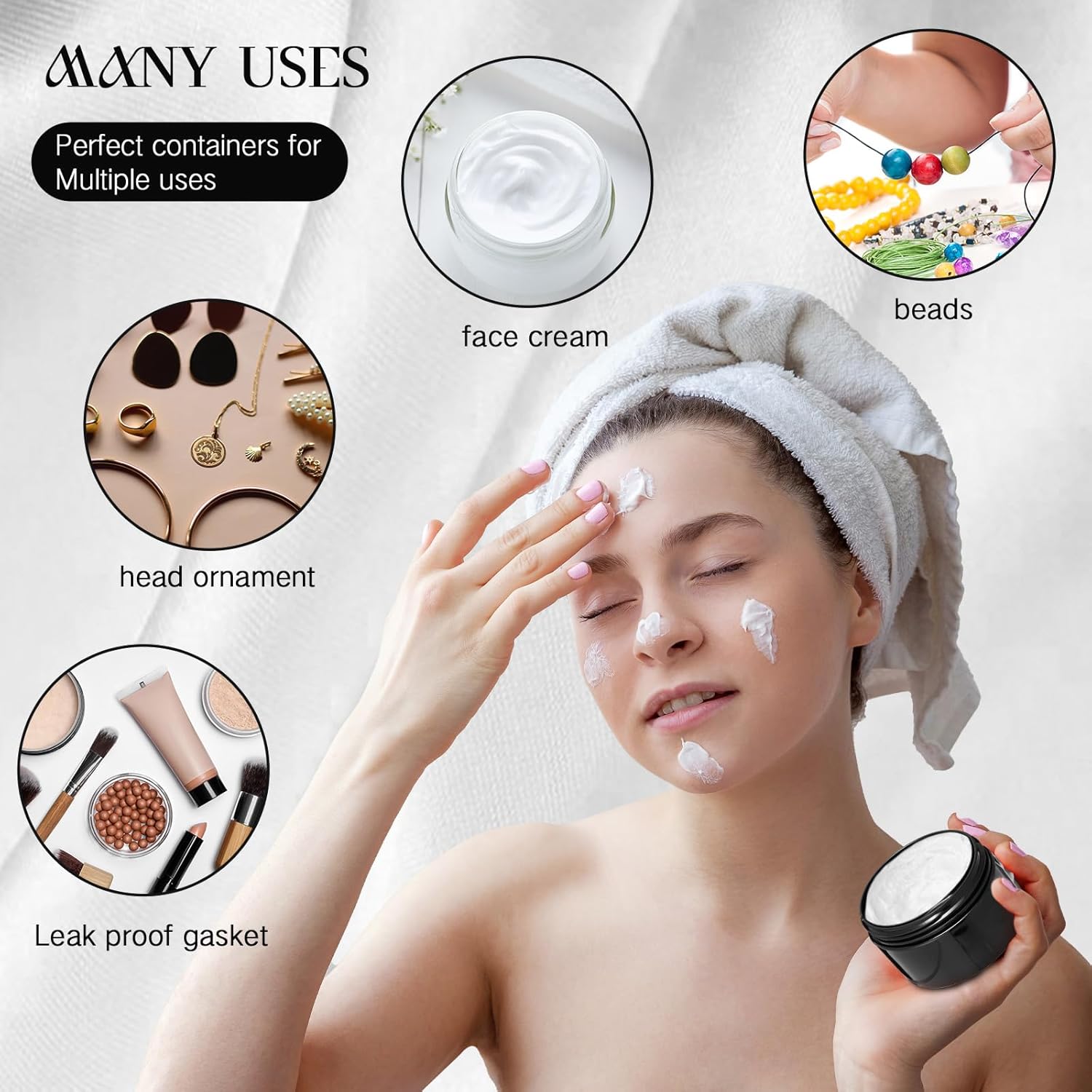 Patelai 4 Pieces Round Wide-mouth Leak Proof Plastic Container Jars with Lids for Travel Storage Makeup Beauty Products Face Creams Oils Salves Ointments DIY Making(4 Ounce,Pure Black)