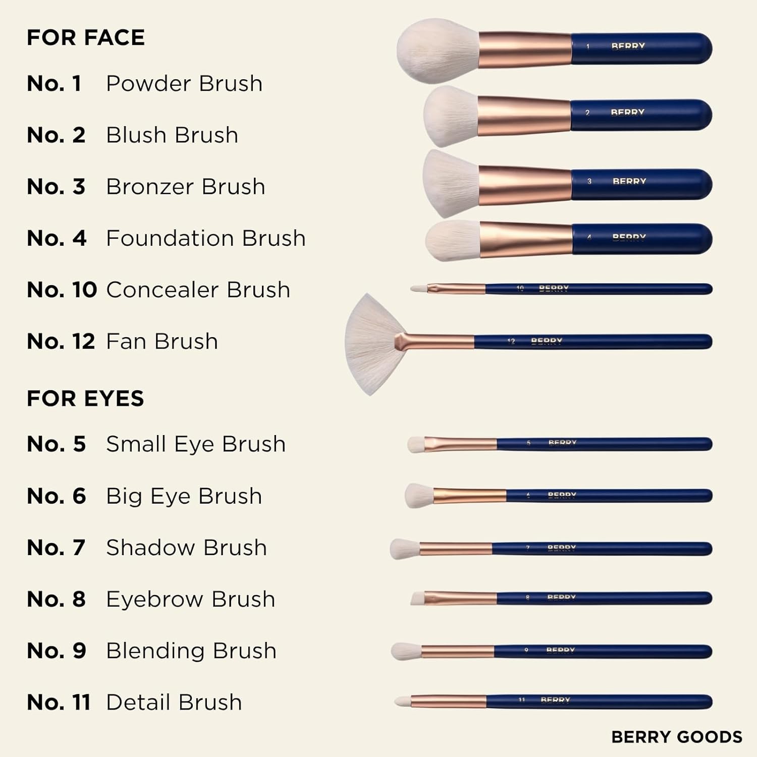 BERRY Blue Premium Makeup Brush Set – 12-Piece Professional Ultra-Soft Synthetic Brushes for Face & Eyes | Foundation, Powder, Blush, Concealer, Eyeshadow – Vegan, Cruelty-Free, Numbered, Travel Case