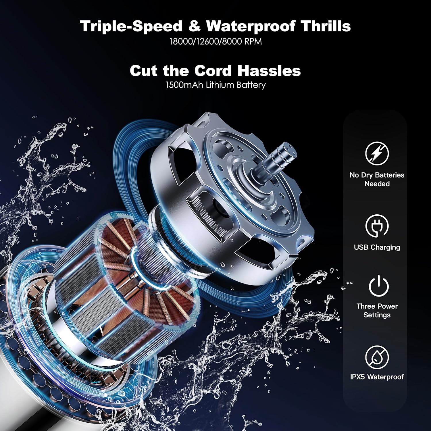 - 【Deep Clean and Quick Dry in One Step】The electric brush cleaner ensures a powerful clean and dries brushes in seconds. High-speed rotation removes dirt, oil, and makeup buildup, leaving your tools spotless and ready for flawless application. Paired with Tea Tree Oil Cleaner, it guarantees a hygienic cleanse that helps prevent breakouts.
