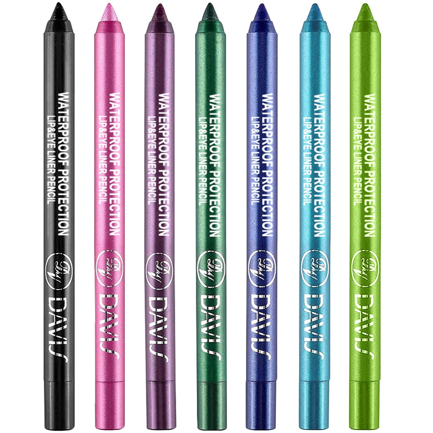 7 Colorful Eyeliner Pen Set, Eye Shadow Pencil, Pearl Eyeliner Kit Metallic Glitter Colored Eye liner for Women Eye&Lip Liner Professional Waterproof Eye Makeup (7PCS B)