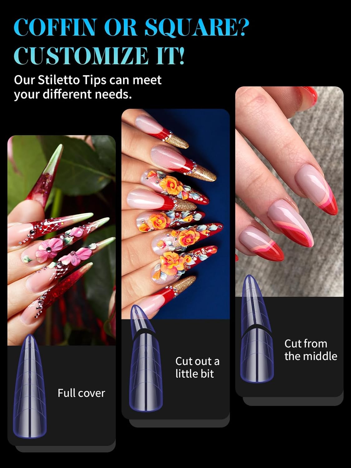 - 【Nail Form Mold with 12 Sizes】96pcs stiletto clear dual forms for poly nail gel offers 12 different nail sizes , and each size of long nail tips is separated by a small grid, a total of 12 grids, so they're easy and convenient to choose the suitable size to meet your nail's need.