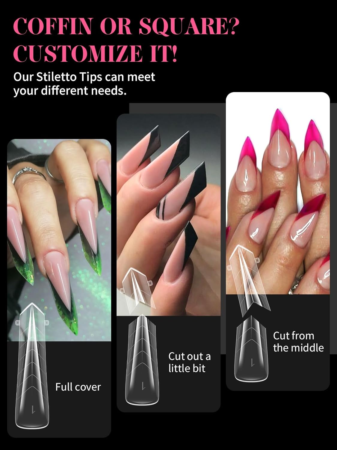 - 【Nail Form Mold with 15 Sizes】150pcs stiletto clear dual forms for poly nail gel offers 15 different nail sizes , and each size of long nail tips is separated by a small grid, a total of 15 grids, so they're easy and convenient to choose the suitable size to meet your nail's need.