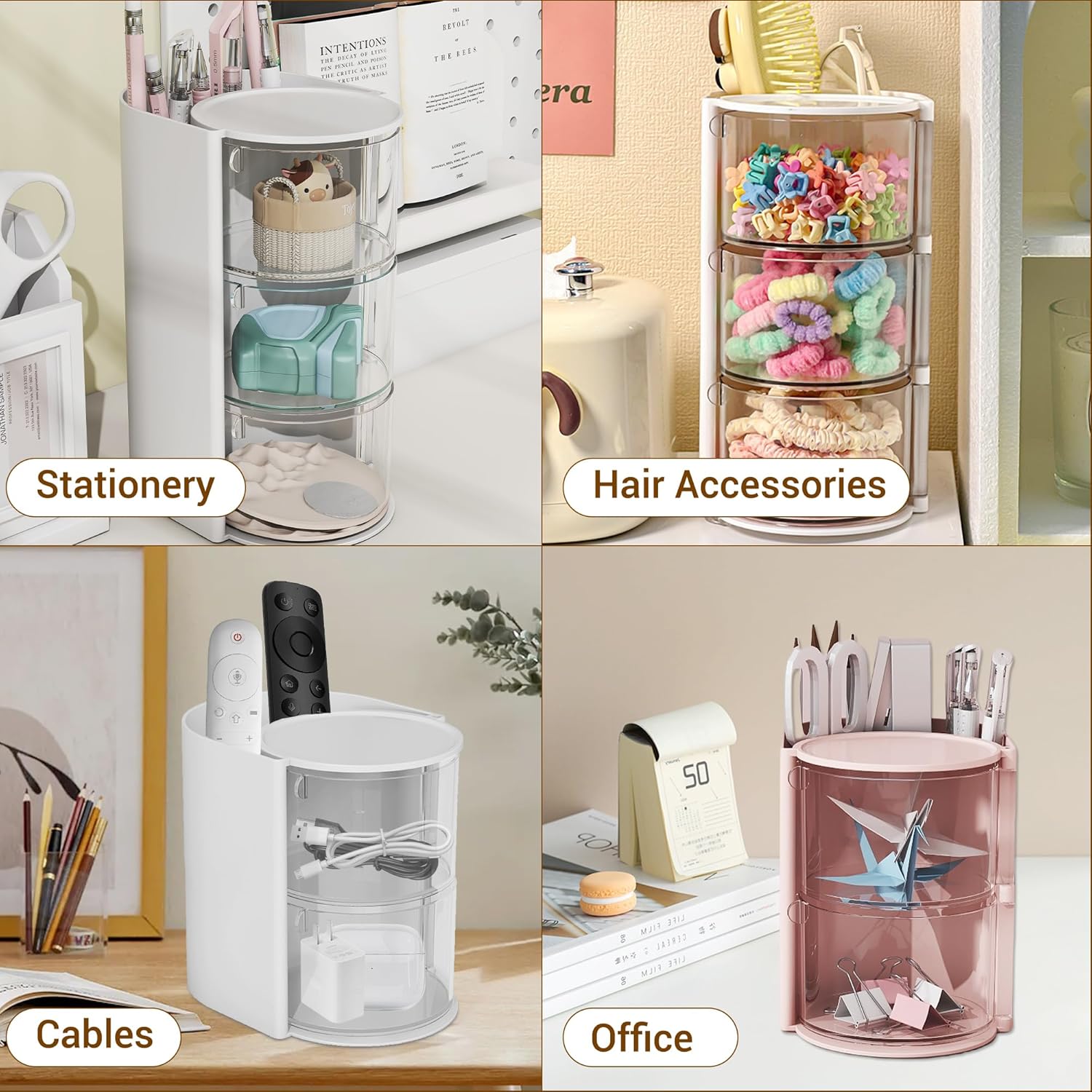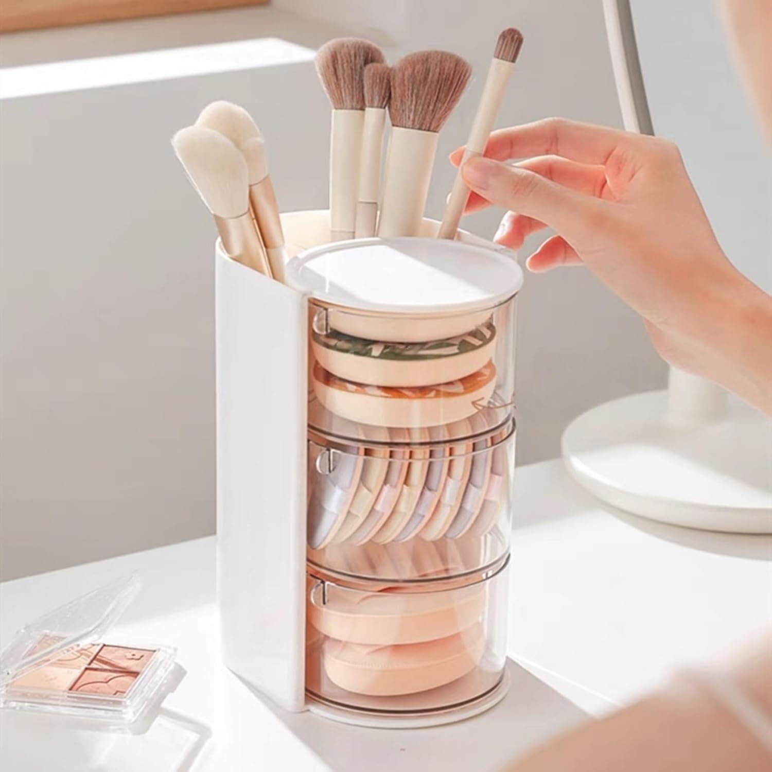 - ✅【Rotatable Design】The hair tie organizer unique 180° rotatable design allows you to quickly find the powder puff, beauty egg, cotton swab or hairpin you need with just a slight turn, without the hassle of searching, saving you makeup time