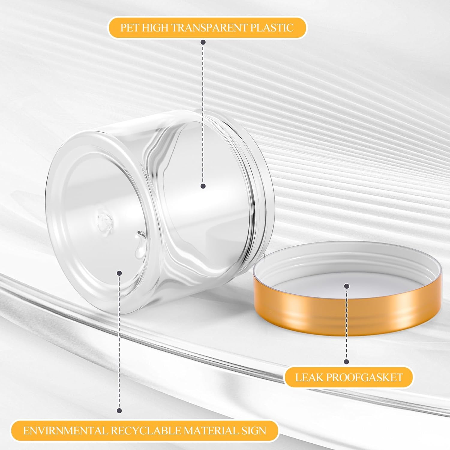 SATINIOR 36 Pieces 6 oz Plastic Jars with Lids Wide Mouth Airtight Reusable Container Acrylic Cosmetic Small Jars for Lotions Ointments Travel Toiletries Creams Make up Storage(Gold)