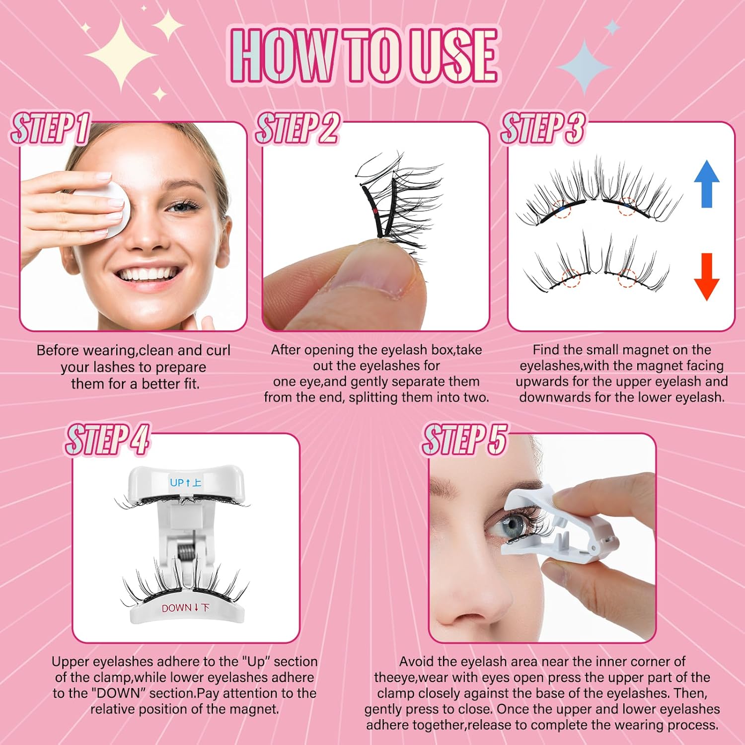 - No Glue&Eyeliner Needed: If you're struggling with using glue to apply false eyelashes and always make a mess and fail. Please try on magnetic lashes, magnetic eyelashes without eyeliner are different from traditional lashes, they do not need any partner. Say goodbye to the hassle of traditional methods and enjoy our the latest upgraded soft lightweight magnet.