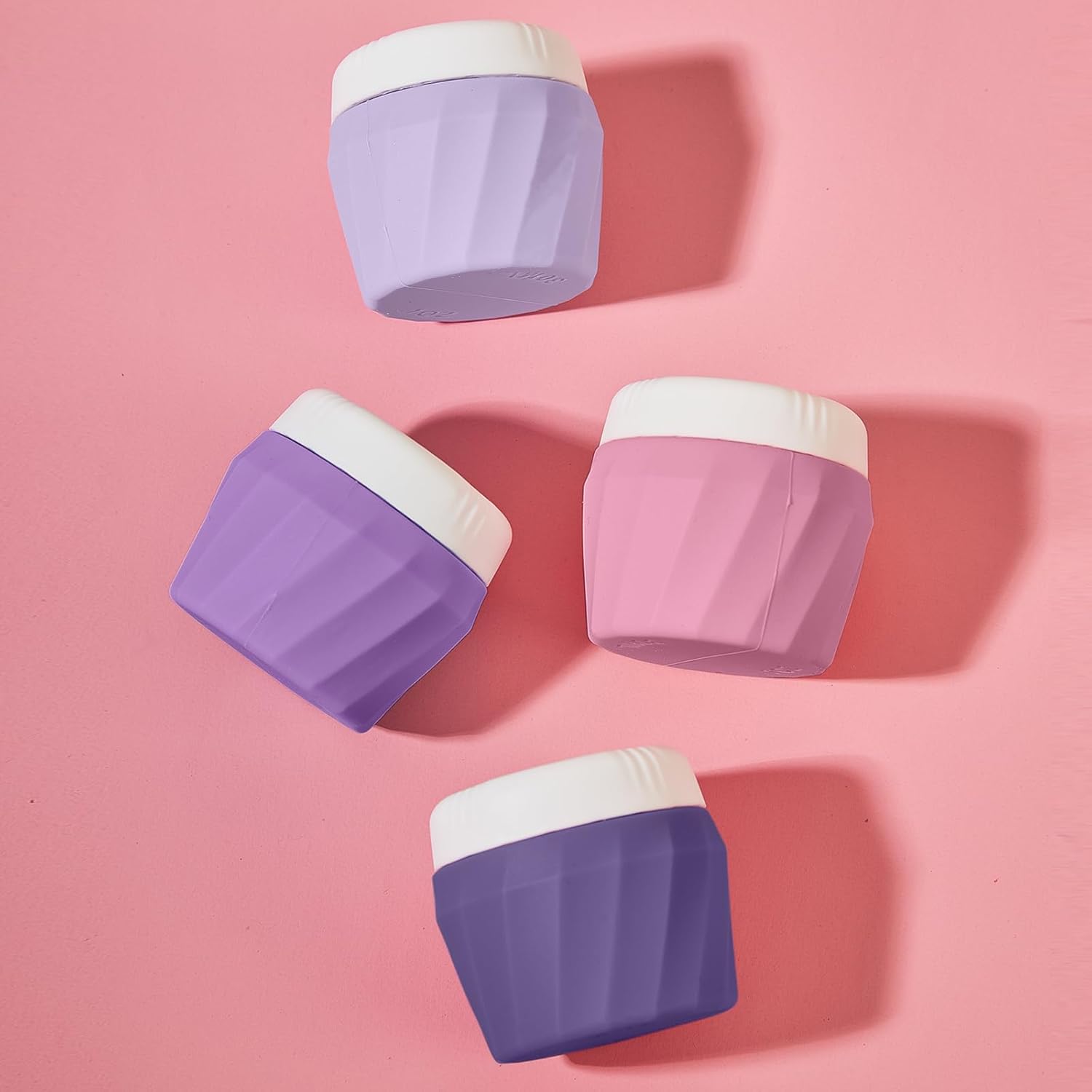 Travel Containers for Toiletries, Premium Silicone Cosmetic Cream Jars, TSA Approved Leak-Proof Refillable Travel Size Toiletries with Clear Bag for Cosmetic Face Body Cream (Purple, 1OZ)