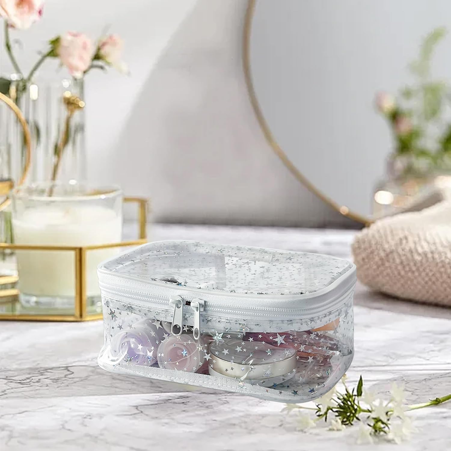 - 🌷【Wide Range of Uses】Our transparent holographic cosmetic bag can not only be used as a storage bag,waterproof bag,gift bag,frequently used item bag,but also can be used to store cash,glasses,keys,portable batteries,etc.This waterproof and dustproof tote makeup bag keeps everything safe and prevents liquid leaks
