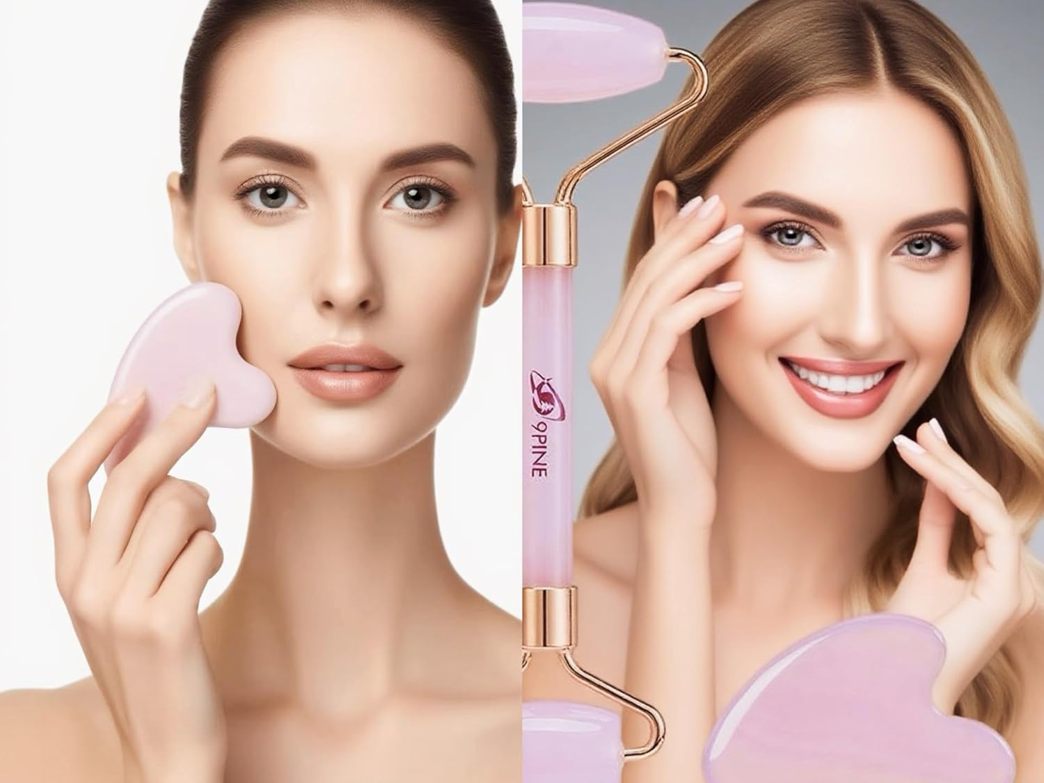 - PREMIUM DESIGN: Sturdy construction with gold-tone metal fixtures and smooth white,pink stone surfaces that glide effortlessly across skin without squeaking