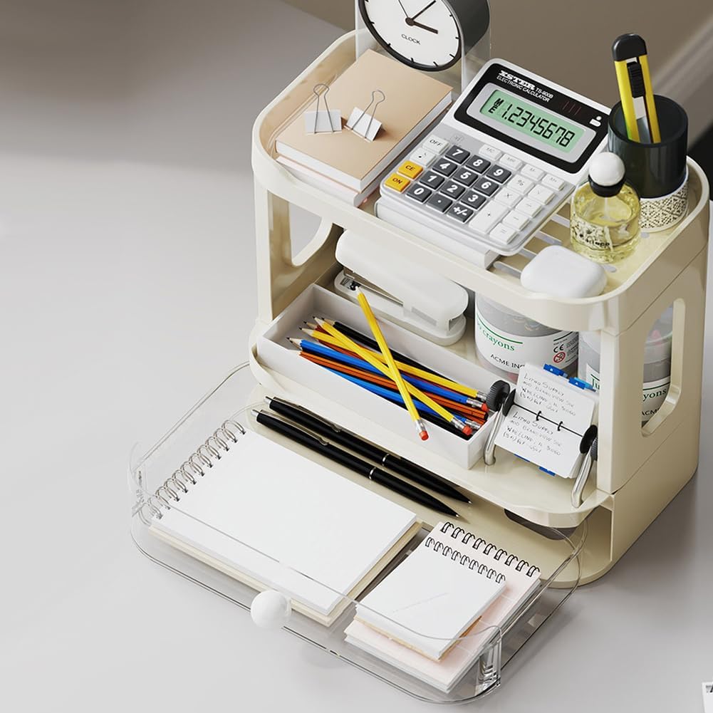 3-Tier Desk Organizers & Dispensers,Mail Holder for Office Desk Organization,Kitchen Spice Rack or Bathroom Countertop Organizer, Gift for Teachers, Classmates, and Friends (Beige)
