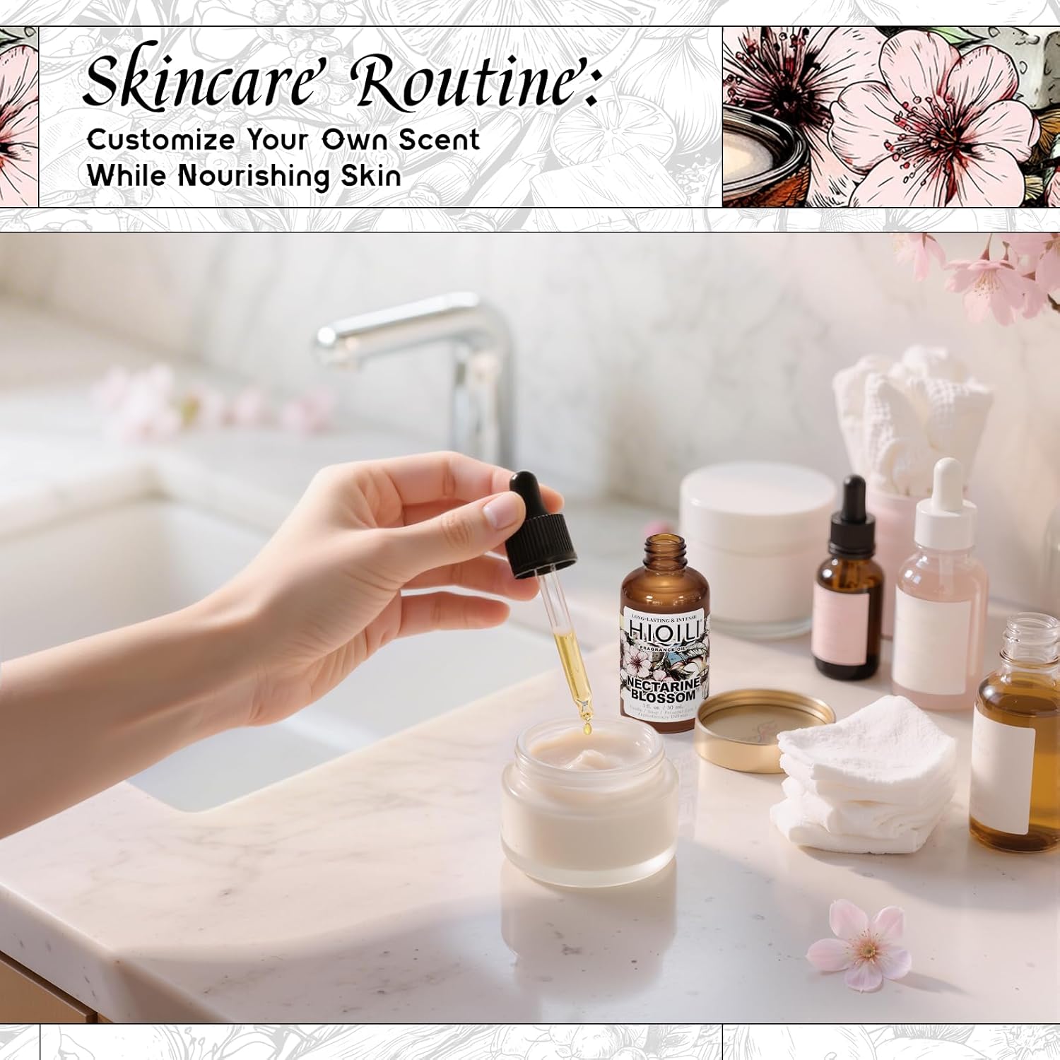 HIQILI Nectarine Blossom Fragrance Oil for Candle & Soap Making, Essential Oil Diffuser Use, Add to Body Lotion, Dryer Balls - 1 Fl Oz