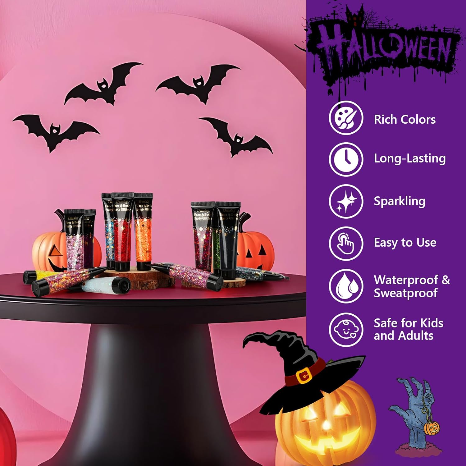 14 Colors Body Glitter,Face Glitter Makeup for Kids Women,Sparkly Chunky Hair Glitter for Eye Lip Nails,Mardi Gras Glitter Makeup Face Paint,Singer Concerts Disco Rave Festival Accessories-Hallowmas