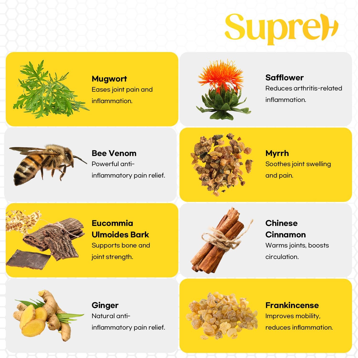 - Effective Arthritis Care Cream – SupreH Bee Venom Cream for Arthritis is a fast-acting soothing pain relief massage gel that delivers deep comfort for sore joints and stiff muscles.