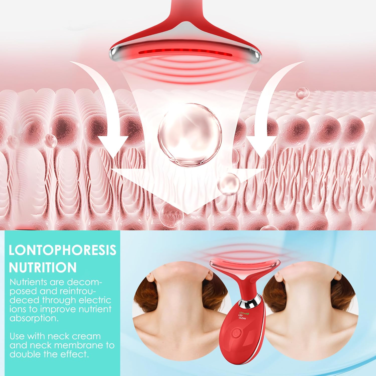 Facial Massager Red-Light-Therapy-for-Face and Neck, Face 𝖲 culpting Wand with 7 Color (Bright Red)