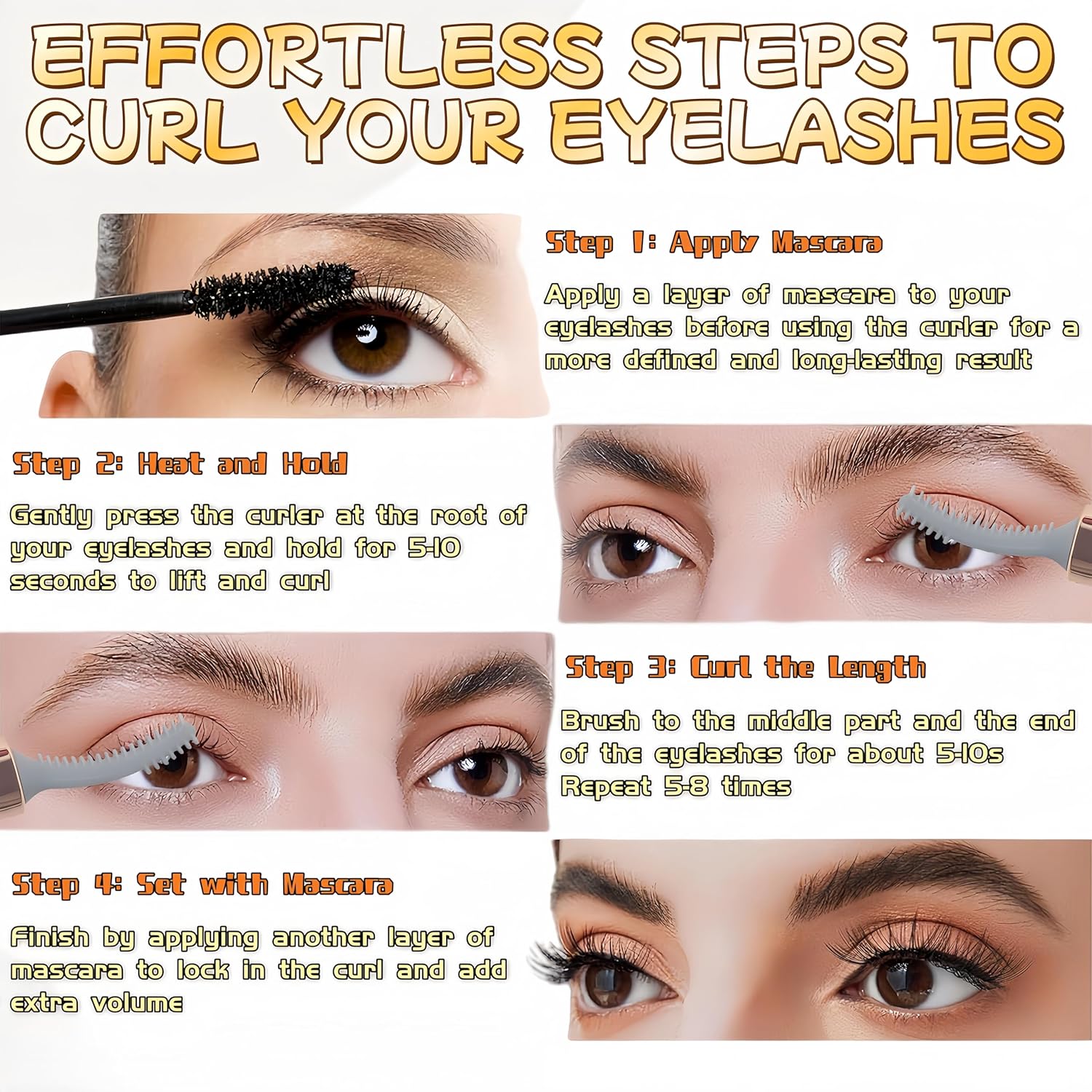 - 【Usage Tips】🔋 First Use: Fully charge for 1-2 hours. Practice the operation technique before formal use. ✨ Curling Hack: Lightly apply mascara before curling to boost heat setting. Reapply after curling for a natural, long-lasting lift